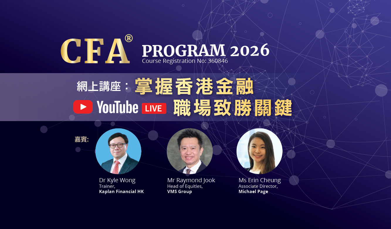Online Live Streaming on our YouTube Channel (Kaplan Financial HK)
